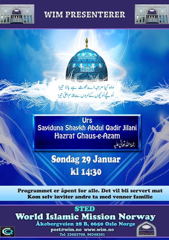 The Urs of Sayiduna Sheikh Abdul Qadir Jilan r.a. is an annual event that will be commemorated this year on Sunday, January 29th at 14:30 at WIM.