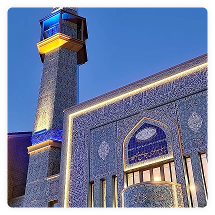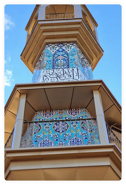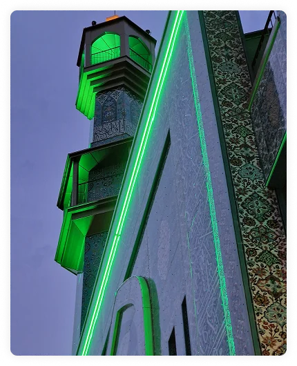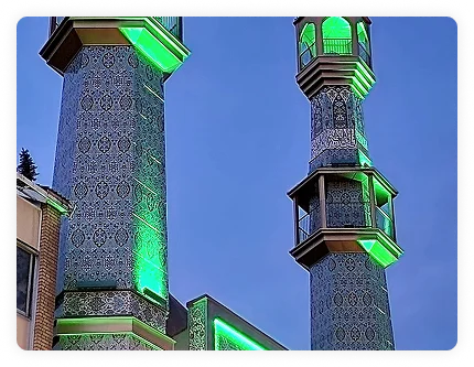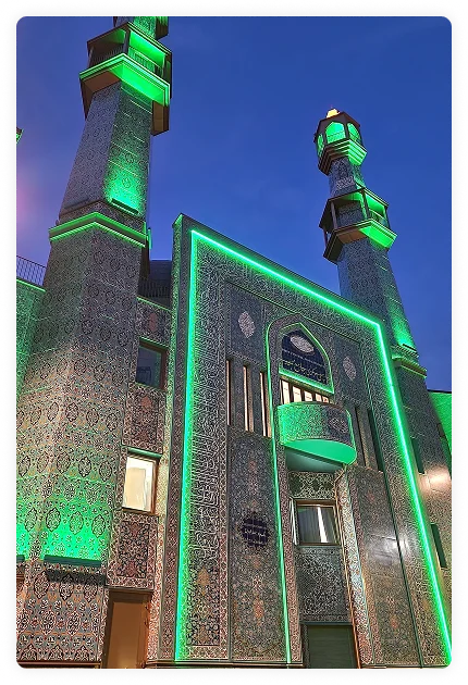 The exterior images showcase the facade, entrance, and outdoor area. The light, materials, and overall composition create an expression that is both modern and traditional. Inside, you will find pictures of lighting, ornamentation, and decorations that highlight the room’s character. The atmosphere is characterized by light, colors, and details that create peace, solemnity, and community. The gallery is updated regularly with new images so that you can follow the development and experience the mosque from different perspectives – both in daylight and evening light, from overall to details.